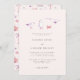Whimsical and rustic beach theme wedding invitation featuring illustration of seagulls and a crab in pastel colours.
