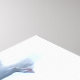 Seagulls flying over the sea, in tones of blue, white and grey with touches of complementary gold.