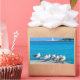 Seagulls on a sandy beach in Nassau, Bahamas.