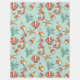 Seahorse and Seashell Pattern Teal Fleece Blanket