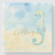 Seahorse and Starfish coastal beach blue yellow watercolor