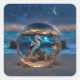 Seahorse and Starfish Underwater Beach Surreal Square Sticker