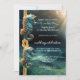 Wedding invitation featuring two elegant seahorses with a knot in a rope in a sparkling underwater world. You can replace the image on the back with your custom photo if you like. Beautiful for a nautical, aquarium or destination wedding.