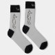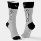 Stylised black and white icon of a seahorse. Custom background colour. Custom top stripe colour. Custom text on each sock.