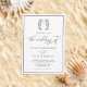 This classic minimal white and dark grey wedding invitation design is perfect for coastal and nautical themed and beach destination weddings, with 2 cute seahorses kissing at the top, elegant script calligraphy, and a frame around the edge.