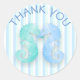 Seahorse Couple Blue Green Seahorses Kiss Thank You Stickers, cute for beach themed wedding or tropical baby shower.
