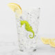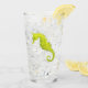 A watercolor of a vibrant yellow seahorse adorns this pretty glass!
