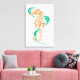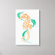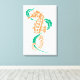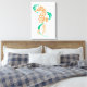 Seahorse coral orange, emeral green and seaweed on white background kids canvas print.