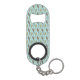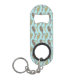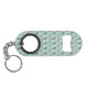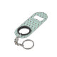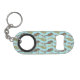 Aqua blue bottle opener with a pattern of zigzagging seahorses in golden yellow and browns. The reverse side has the same pattern in a smaller print size.