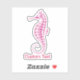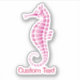 Stylised pink icon of a seahorse. Custom Text.
