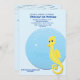 An adorable seahorse with a big, blue, water bubble is an invitation well suited for any summer, water-sport affairs.