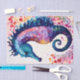 Tissue paper features vibrant, colourful oil painting artwork of a rainbow-coloured seahorse against multicolor flowers. A bold floral art piece combining land and sea elements for a surprising contrast.