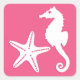 Seahorse & Starfish, Fuchsia Pink and White Square Sticker