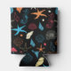 Add some summertime fun with ocean sea life. Seashells, Starfish & Seahorses on a black background with red, orange and blue.