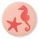 Mixed media digital rendition of a seahorse and starfish in deep coral orange against a light coral orange background