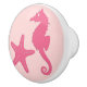 Mixed media digital rendition of a seahorse and starfish in deep coral pink against a light coral pink background