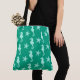 Mixed media digital rendition of a seahorse and starfish in light seafoam green against a rich, underwater teal background print bag