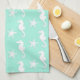 Seahorse & starfish - white on pale aqua tea towel