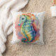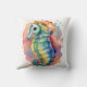 The Seahorse Watercolor Colourful Print throw pillow features vibrant, whimsical seahorses in a rich array of watercolor hues, adding a playful and artistic touch to any room.