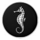 Stylised white icon of a seahorse.