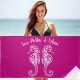 Seahorses-Fisherman Core-Hawaiian-Tropical-Pink Beach Towel