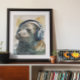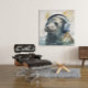 Dive into a deep-sea rhythm with this Custom Seal Music Factory Headphones Poster. This tranquil yet funky piece features a serene seal wearing professional over-ear headphones, perfectly rendered in a soft watercolor style with aquatic blue and golden splashes. Ideal for a bathroom, a coastal-themed office, or a modern nursery, this high-quality print captures the peaceful and playful nature of the sea with a musical twist.