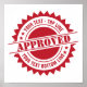 Customise all text in this red Seal of Approval or award poster. Edit the text in all three lines. The background border is a sunburst type seal graphic with layers of circles and small stars for an official looking seal.