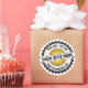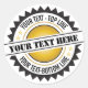 Customise all text in this seal of award, prize or recognition. Edit the text in all three lines. The background border is a sunburst type seal graphic with layers of circles and small stars for an official looking seal.