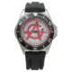 Has heft and feel of expensive stainless steel quartz wrist watches. Solid construction and good looks. Although it had a really top quality rubber strap, I substituted a stainless steel "Shark" style mesh strap, which I think is the most comfortable strap available. Perfect. True colors of original image. Clear, crisp image precisely aligned and spaced.