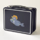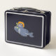 This is a standard metal lunchbox that appears to work just fine. We designed this box ourselves with an uploaded photo and custom text on the front and back. It looks absolutely beautiful except the front of the lunchbox is not centered like it shows in the photo. The print borders don't align with the inset flat part of the box where the preview photo online showed it perfectly centered in there. The back looks nice and centered though.