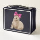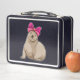 This is a standard metal lunchbox that appears to work just fine. We designed this box ourselves with an uploaded photo and custom text on the front and back. It looks absolutely beautiful except the front of the lunchbox is not centered like it shows in the photo. The print borders don't align with the inset flat part of the box where the preview photo online showed it perfectly centered in there. The back looks nice and centered though.
