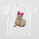 The t-shirt feels and looks great quality, a good thick cotton. It will be a little big for my son, but that means he will be able to wear it and not out grow it too soon. The print was as described on the order when personalised. True size, shape and colour T-shirt- thanks.