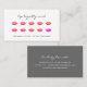 Elegant loyalty business cards feature a 10-punch loyalty program with pink and red watercolor lip illustrations. Personalise with your own loyalty terms and add your contact information to the reverse side. A chic choice for makeup artists, lip colour distributors and beauty retailers.