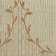 A repeating art nouveau design of geometric cartouches containing a linear flower abstraction. Connected by elongated frets to a smaller complementary cartouche alternately framed on the bottom and top by vine on a ground that becomes darker towards the base with a linear overall design between horizontal banded borders. Printed in olive green, taupe, beige, bronze, gold and dark brown