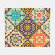 Seamless colourful patchwork tile with Islam, Arabic, Indian, Ottoman motifs. Majolica pottery tile. Portuguese and Spain decor. Azulejo. Ceramic tile in talavera style. Boho pattern