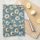 Seamless Daisy Flower Pattern on Blue Tea Towel
