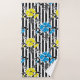 Seamless floral blue yellow flowers grey leaves striped black white pattern