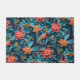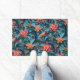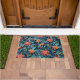A beautiful door mat with a seamless paper floral pattern against a blue background.