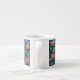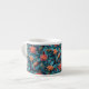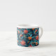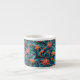 A beautiful Espresso mug with a seamless paper floral pattern against a blue background.