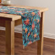 A beautiful table runner with a seamless paper floral pattern against a blue background.