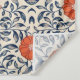 Seamless floral pattern with vibrant orange flowers and navy blue leaves on a beige background, creating an ornate, symmetrical design.