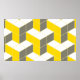 Seamless grey and yellow isometric cubical trident poster