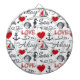 Seamless nautical pattern with nautical symbols (sailing boat, anchor, waves, seahorse, seashell) and red hearts decoration with text design on white background