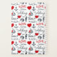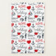 Seamless nautical pattern with nautical symbols (sailing boat, anchor, waves, seahorse, seashell) and red hearts decoration with text design on white background