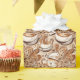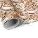 The cappuccino pattern in the image features multiple top-down views of cappuccino cups adorned with artistically crafted foam art. Each cup showcases a unique design on its foam surface, including a heart shape, a Rosetta (leaf-like pattern), and an intricate swirl resembling a flower. The warm colour palette—shades of brown for the coffee and white for the cups and foam art—creates a cosy café ambiance. Some cups are accompanied by saucers, and you’ll spot coffee beans nearby. Overall, it’s a delightful blend of coffee aesthetics, perfect for Zazzle wrapping paper!