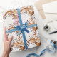 The cappuccino pattern in the image features multiple top-down views of cappuccino cups adorned with artistically crafted foam art. Each cup showcases a unique design on its foam surface, including a heart shape, a Rosetta (leaf-like pattern), and an intricate swirl resembling a flower. The warm colour palette—shades of brown for the coffee and white for the cups and foam art—creates a cosy café ambiance. Some cups are accompanied by saucers, and you’ll spot coffee beans nearby. Overall, it’s a delightful blend of coffee aesthetics, perfect for Zazzle wrapping paper!