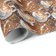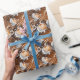 The cappuccino pattern in the image features multiple top-down views of cappuccino cups adorned with artistically crafted foam art. Each cup showcases a unique design on its foam surface, including a heart shape, a Rosetta (leaf-like pattern), and an intricate swirl resembling a flower. The warm colour palette—shades of brown for the coffee and white for the cups and foam art—creates a cosy café ambiance. Some cups are accompanied by saucers, and you’ll spot coffee beans nearby. Overall, it’s a delightful blend of coffee aesthetics, perfect for Zazzle wrapping paper!