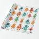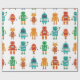 Seamless pattern from colourful retro robots in a flat style on a white background. Vintage illustration.