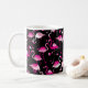 Seamless pattern from pink flamingos on a dark bac coffee mug