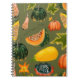 Seamless pattern of pumpkins and leaves on a green notebook